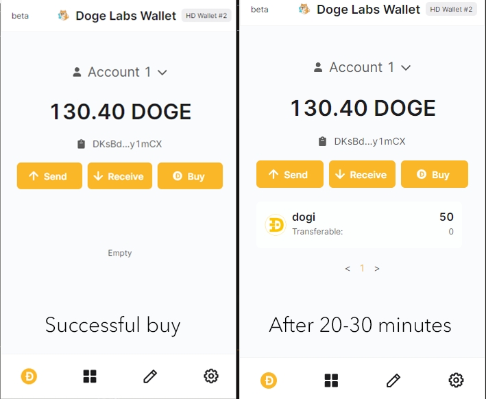 В этом разделе мы расскажем вам, как купить ваши первые токены DRC-20. Убедитесь, что ваш кошелек DogeLabs пополнен, прежде чем начать.